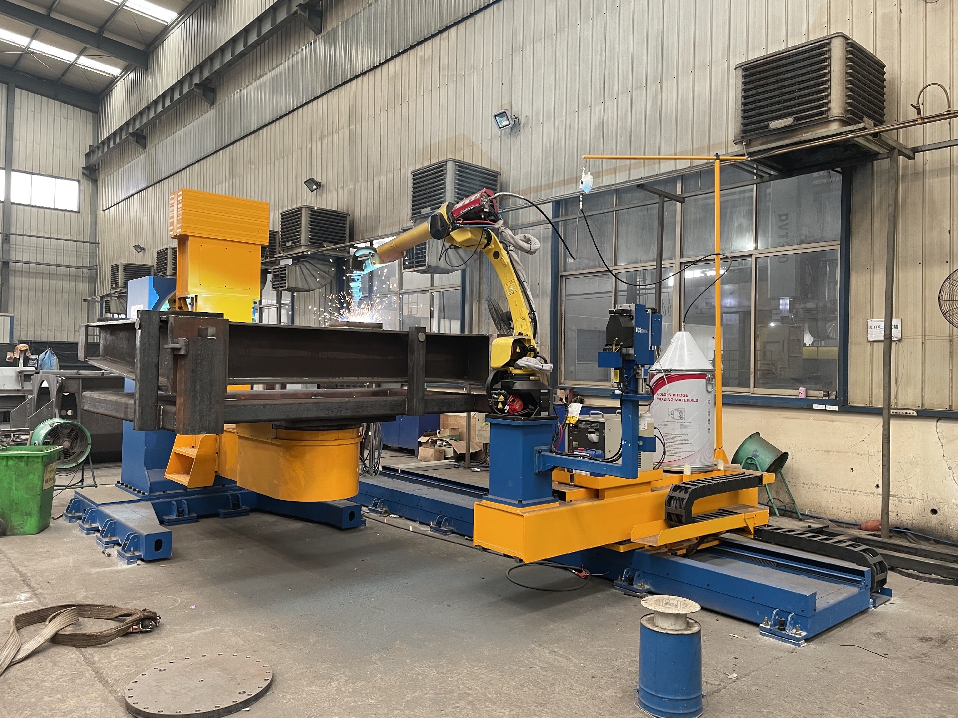風電定轉子焊接機器人工作站采用9軸聯動機器人。這種工作站的設計不僅擴展了機器人的工作空間,還顯著提高了系統(tǒng)的柔性,能夠適應復雜多變的焊接需求。