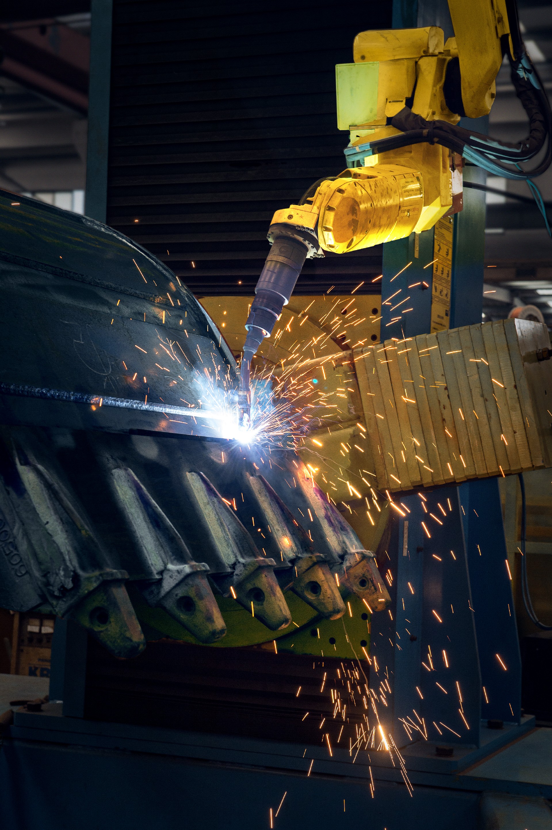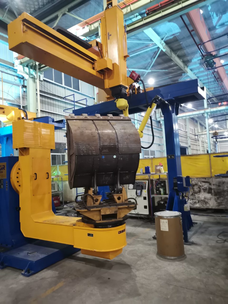 3. 擴展作業(yè)空間和工作站柔性:10軸聯(lián)動機器人的設(shè)計擴展了機器人的工作空間,使得機器人能夠靈活地接近挖斗大組的不同部位,從而提高了系統(tǒng)的柔性,能夠處理多種尺寸和形狀的工件。