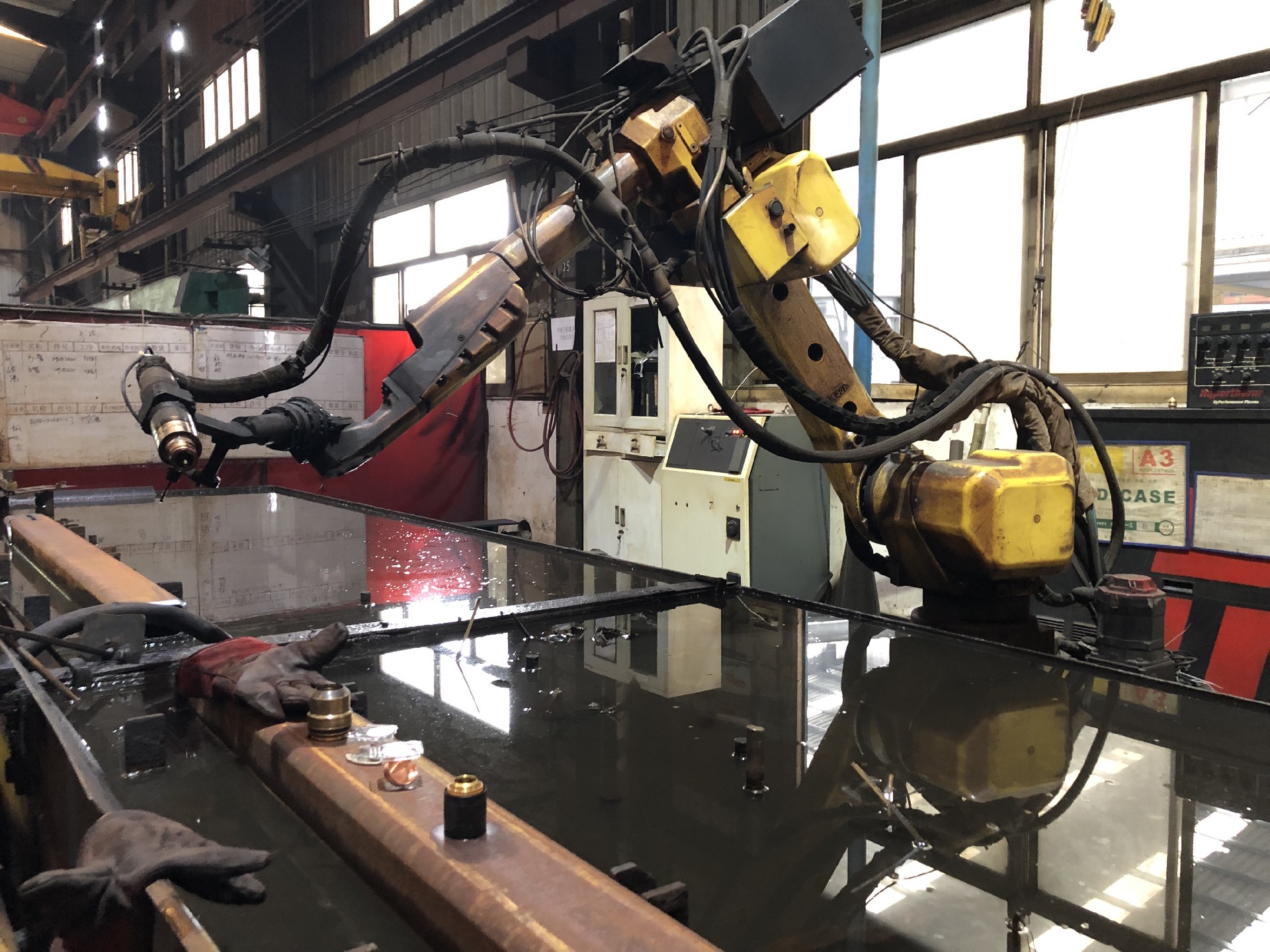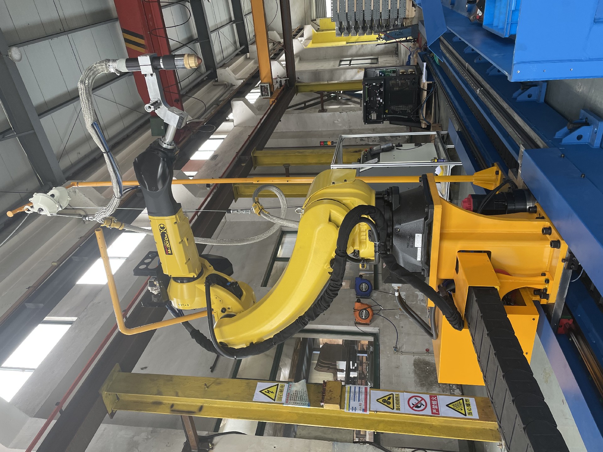 等離子切割機器人工作站采用一軸行走正裝機器人,不僅擴展了機器人的工作空間和系統(tǒng)柔性,還通過雙工位交替工作模式,顯著提高了生產(chǎn)效率。
