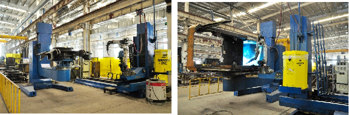 車架機器人焊接工作站采用11軸聯(lián)動三軸行走正裝機器人,這是一種高度集成和靈活的機器人焊接解決方案,旨在滿足重型結構件如車架、框架等大型工件的焊接需求。