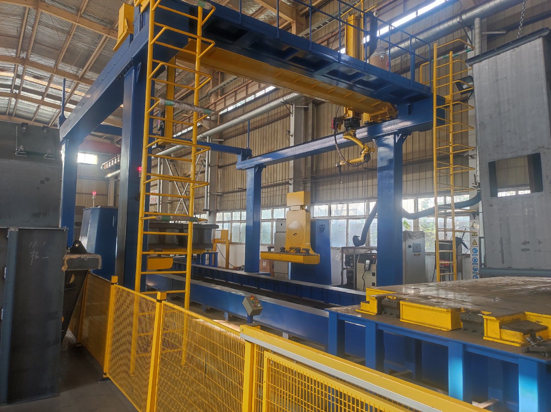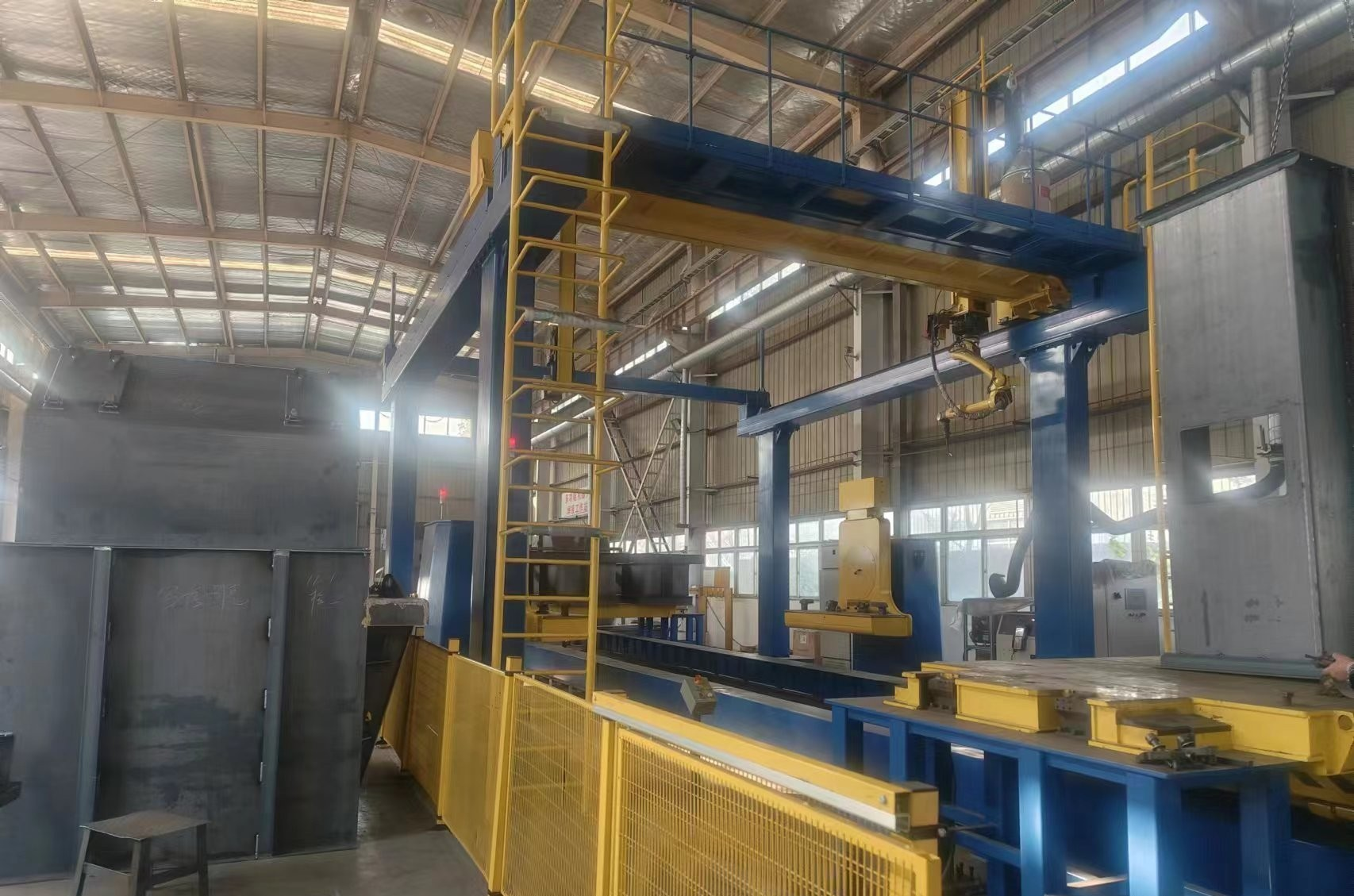 機(jī)頭殼體機(jī)尾殼體機(jī)器人焊接生產(chǎn)線,長度:38m 寬度:8m 高度:8m(工作站7米含除塵管道8米)。生產(chǎn)線上主要分布的有:焊接工位、XYZ三軸龍門式軌道、機(jī)器人、機(jī)器人控制柜、升降臺(tái)、工件、自動(dòng)夾緊單元以及頭尾式變位機(jī)等。