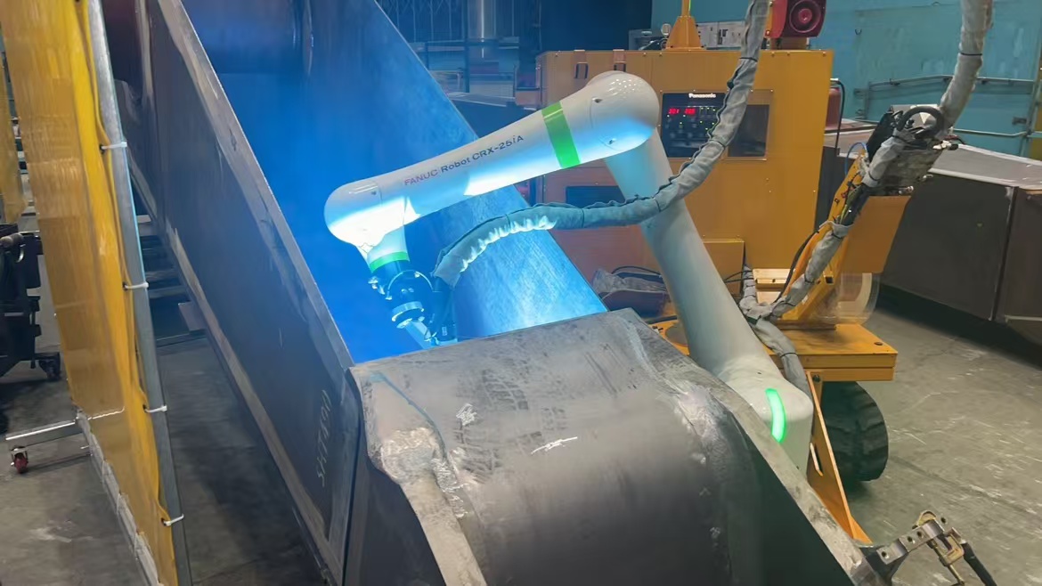 采用日本發(fā)那科機器人焊接系統(tǒng),是低成本、高效益的標(biāo)準(zhǔn)化的機器人生產(chǎn)解決方案。它由履帶底盤、FANUC焊接機器人、松下焊接電源及相關(guān)的周邊設(shè)備組成。系統(tǒng)的設(shè)計以焊接生產(chǎn)工藝的**化為目標(biāo),并具有安全可靠、便于操作的優(yōu)點。