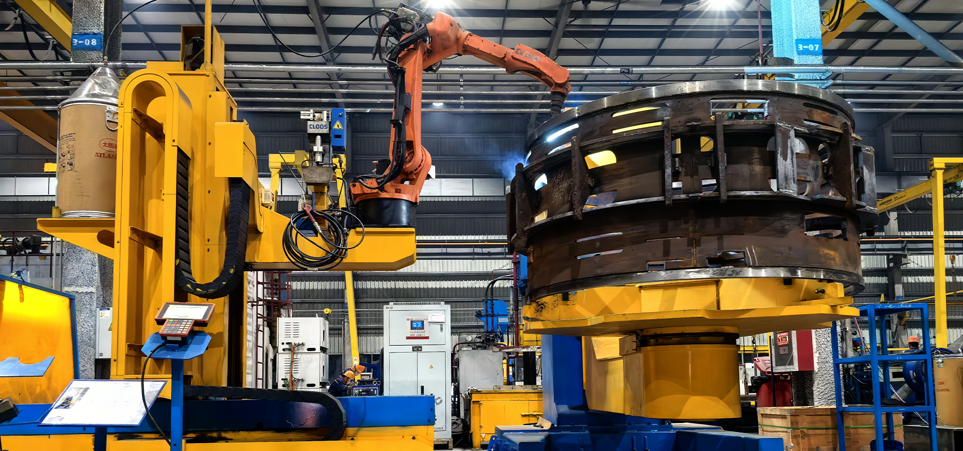 挖掘機(jī)上下中心車架焊接機(jī)器人工作