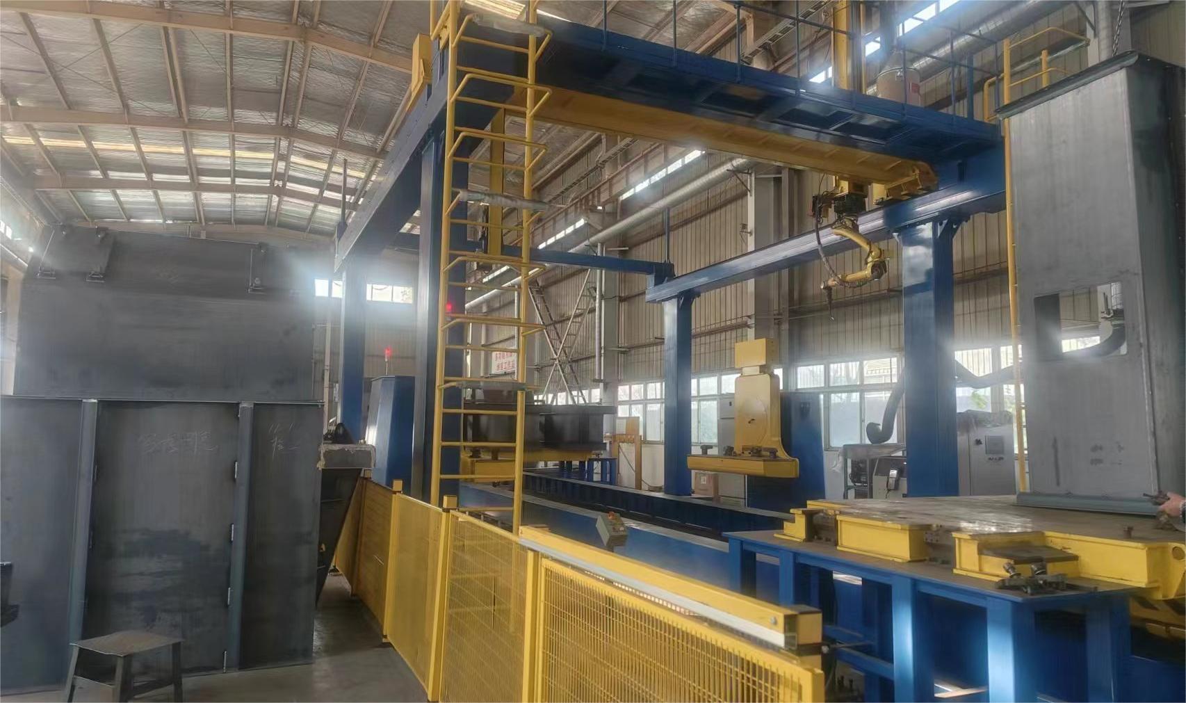 ?雙工位設(shè)計(jì):工作站設(shè)有兩個(gè)獨(dú)立的工位,一個(gè)工位進(jìn)行焊接作業(yè)時(shí),另一個(gè)工位可以進(jìn)行工件的裝卸、定位等輔助工作。當(dāng)一個(gè)工位的焊接任務(wù)完成后,機(jī)器人可以立即轉(zhuǎn)移到另一個(gè)已經(jīng)完成輔助工作的工位開始新的焊接任務(wù)。這種方式節(jié)省了輔助工作時(shí)間,提高了生產(chǎn)效率。